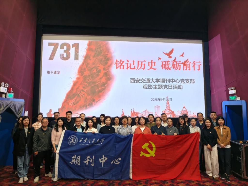 为纪念中国人民抗日战争暨世界反法西斯战争胜利80周年,进一步铭记历史、传承红色基因,增强党员干部的责任担当与使命意识,2025 年 9 月 30 日,西安交通大学期刊中心党支部以“铭记历史,砥砺前行”为主题,组织全体党员及部分群众开展了《731》观影主题党日活动。